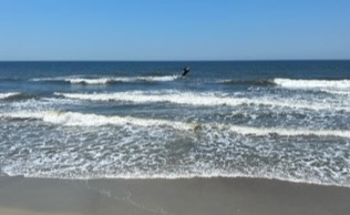 The trip down to our beach spot—following the several attempts it took for me to wrestle the kayak past the breakers—was peaceful and relaxing. When I arrived at the hotel’s beach my dad was there ready to watch while he worked. I spent a little time floating, paddling, and floating again getting familiar with what it took to remain in my dad’s field of vision. The waves kept crashing, their sound beckoning me to try to ride them to the shore. I knew that riding “in” would result in having to get myself and the kayak back “out” but…I had come all this way already right? I pointed the nose toward the beach and engaged the waves. It was exciting to paddle into the break, immediately the wave took over and I was cruising. Soon the nose of the kayak started to pull left with the tide, the kayak turned quickly, and I got to roll over. It was so much fun! I fought my way back out and because of what I had learned on my first run most of the rest of my “rides” resulted in the nose (of the kayak) hitting the beach first.